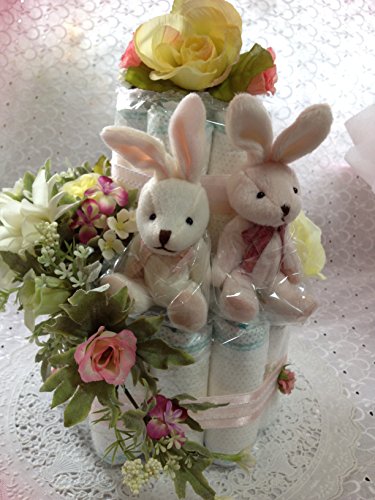 おむつケーキ女の子 双子ちゃん用 おむつケーキ 2段 キャンドルリング 豪華 センスが良い 出産祝い 結婚祝 双子人気ナンバーワン (パンパースM, ピンク)