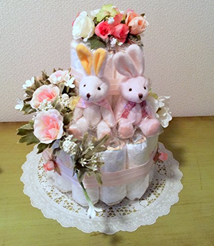 おむつケーキ 双子ちゃん用 おむつケーキ 2段 キャンドルリング 豪華 センスが良い 出産祝い 結婚祝 双子人気ナンバーワン (S, pink)
