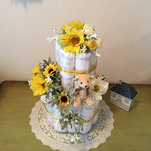 おむつケーキ 2段 出産祝い 男女兼用 人気商品 結婚祝 Sunflower (はじめての肌へのいちばんMサイズ)