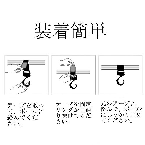 - 360度回転:フック部分が360度回転するので、再度装着し直す必要はありません。