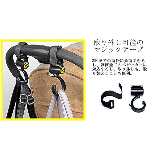 Grandmart ベビーカーフック 荷物フック マジックテープ式 大人気 360度回転 軽量 便利 2個セット