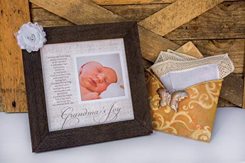 8 x 8 distressed Barnwood frame with silk flower accent;Grandma's Joy poem and photo opening;Great Mother's Day, Birthday, New Baby or Christmas gift;Matching brag book available in a separate listing;Also available for Gigi, Nana or Mimi in separate listings