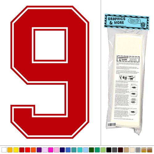 グラフィックスと詳細Varsity Number 9 – スポーツ子供部屋 – ビニールステッカーデカール壁アート装飾 レッド 073116W5533_DarkRed