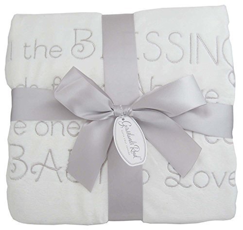 Keep baby warm and cozy with this ultra-soft nursery blanket;Made of plush cream and silver fabric, it's as decorative as it is functional;Heartwarming message reads Of All the Blessings God Sends from Above The One most precious is a Baby to Love;Silver and cream theme makes this a great gift for girls and boys;Measures 30 inches x 32 inches
