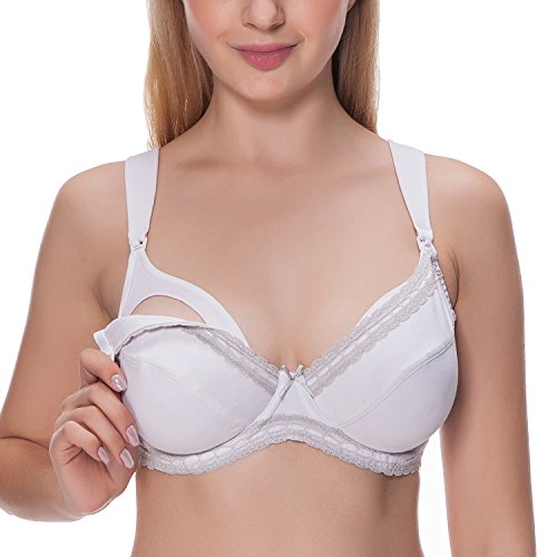 Gratlin レディース 花柄レース ワイヤー入り フルカップ 妊婦 美胸 マタニティブラ 授乳ブラジャー ホワイト1 D75