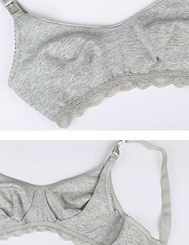 Gratlin レディース 授乳ブラ マタニティブラ レース飾り ノンワイヤー 綿 無地 産前産後兼用 授乳ブラ グレー E75(34DD)