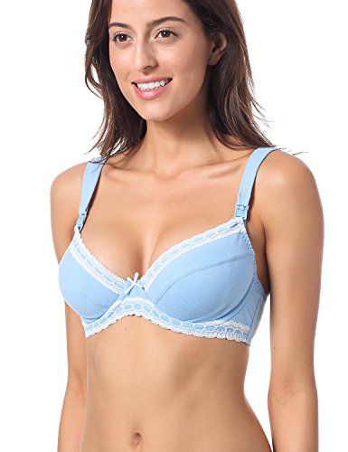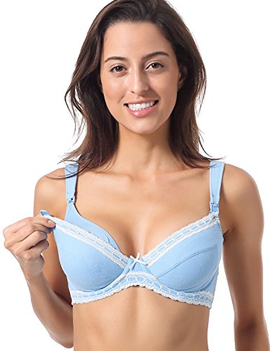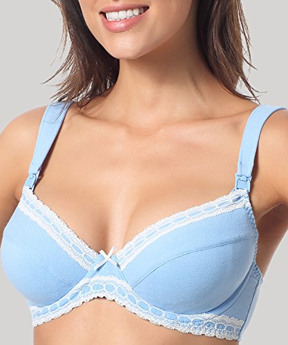 Gratlin レディース 花柄レース ワイヤー入り フルカップ 妊婦 美胸 マタニティブラ 授乳ブラジャー スカイブルー D95