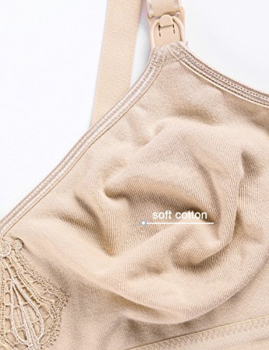Gratlin レディース コットン 綿 ナンワイヤー フルカップ 妊婦 産前産後兼用 マタニティブラ 授乳ブラジャー ベージュ D-E 80