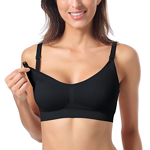 Gratlin レディース 授乳ブラジャー フルカップ マタニティブラジャー ノンワイヤー 延長ホック 産前産後兼用 授乳ブラ ブラック L (E85 F85 C90 D90)
