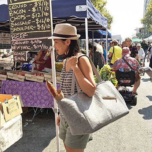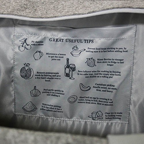 Farmer 's Market Toteは安全が頑丈な軽量ポリエステルフェルト、の機能内部のゴムのストラップで作られています。付き携帯電話のポケットを持ち充電能力が不足しています電源銀行または類似した製品は同梱されていませんのため、贈り物は、Googleのレシピにスポットが生じることがあります。また、トートには次のようなバンブーカッティングベースを強めるにサポートアイテム(チーズ一方で、パイとケーキを転送)と兼ねてトレイを、一時ワインとチーズが大好きです。