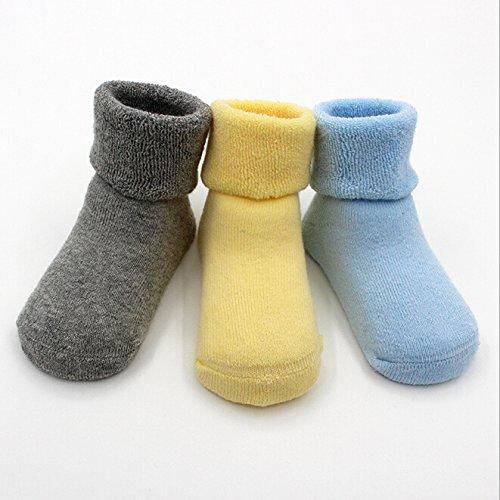 赤ちゃん ベビー 新生児 可愛いソックス 靴下 柔らかい靴下 秋冬 お祝い 出 産 祝い 保温ソックス 3足 (M, 多色)