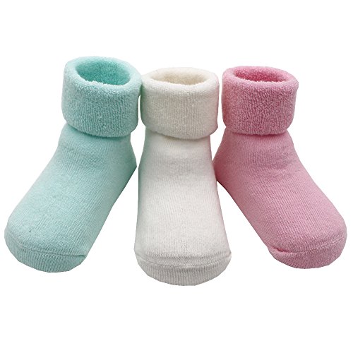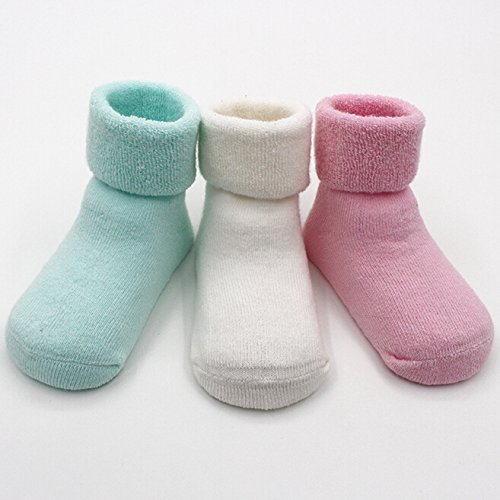 赤ちゃん ベビー 新生児 可愛いソックス 靴下 柔らかい靴下 秋冬 お祝い 出 産 祝い 保温ソックス 3足 (S, 多色)