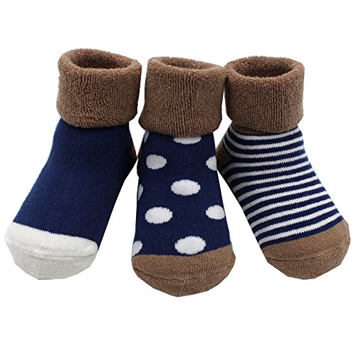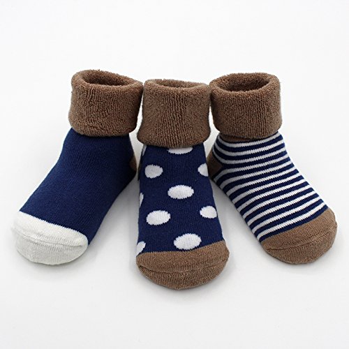 赤ちゃん ベビー 新生児 可愛いソックス 靴下 柔らかい靴下 秋冬 お祝い 出 産 祝い 保温ソックス 3足 (M, ブルー)
