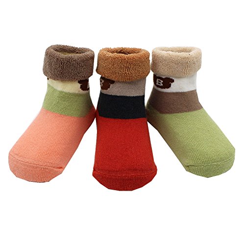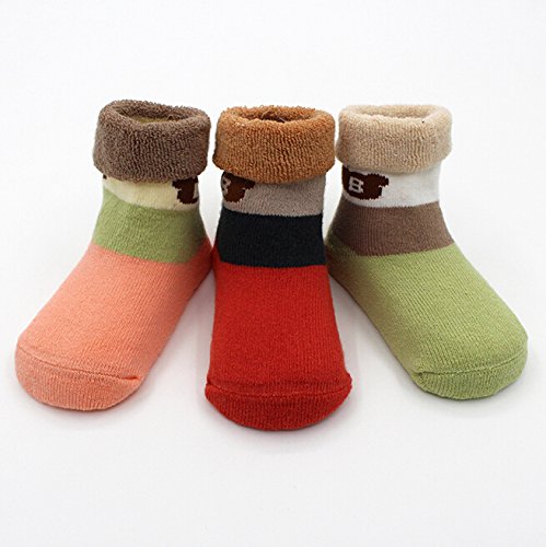 赤ちゃん ベビー 新生児 可愛いソックス 靴下 柔らかい靴下 秋冬 お祝い 出 産 祝い 保温ソックス 3足 (S, 多色)