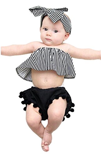 かわいい赤ちゃん女の子ストライプOff Shoulder ElasticファッションSummer Outfit Shortsブラウス+リボンカチューシャ2個入り