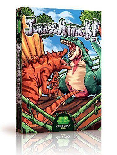 In JurassAttack!, two players face-off in an epic head-to-head dinosaur battle!? In this quick card game, each player chooses a dinosaur or pack of dinosaurs from their hand, then reveals them simultaneously to compare Ferocity values to see who has the h