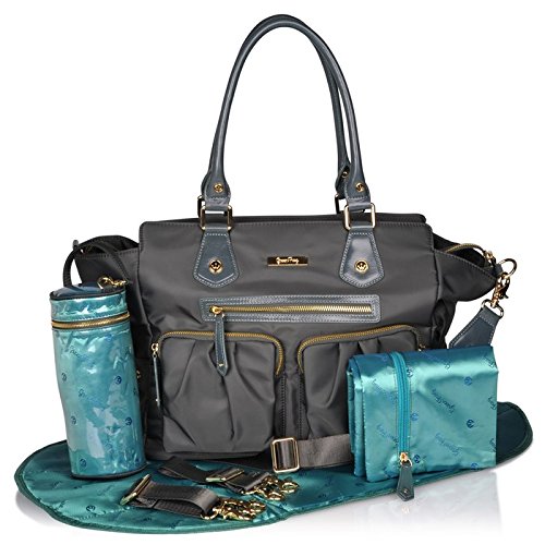 Luxury Diaper Bag in Stylish Charcoal, 7-Piece, Weekender- Tote Bag -Baby Boy & Baby Girl - Fashion Bag for Trendy Moms - CALLIE DIAPER BAG by Green Frog Baby by Green Frog