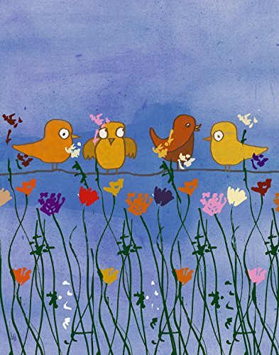 Green Leaf Art Birds and Flowers 1 Canvas Art [並行輸入品]