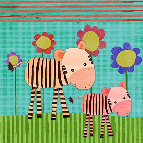 Green Leaf Art Zebras on Color Canvas Art [並行輸入品]