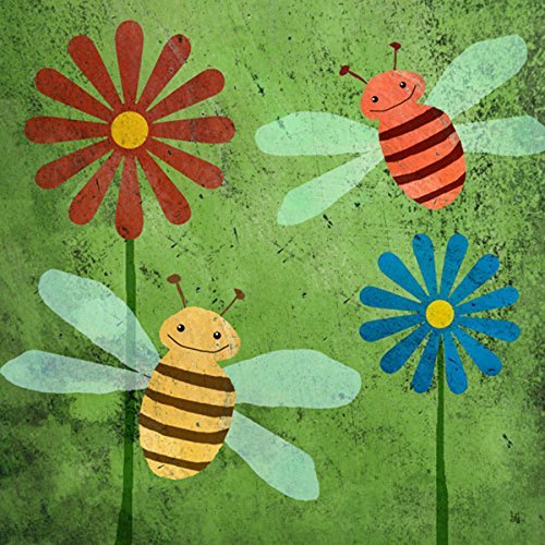 Green Leaf Art Bees on Green Canvas Art [並行輸入品]