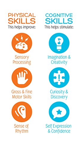 A brightly-chiming bell is enclosed in a colorful wooden cage with a smooth wooden handle shaped to be easy to hold; a wonderful introduction to music!;The bell is enclosed in a colorful wooden cage with a smooth wooden handle that is shaped for easy holding.;Crafted from chemical free Rubberwood with a non-toxic, clear-coat finish over German-made, VOC free water-based paint