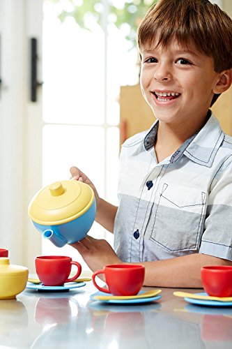 Talk about green tea!! Young hosts can serve up a pot of tea while doing something really good for the earth. Like all Green Toys products, our Tea Set is made from eco-friendly materials, helping to reduce fossil fuel use and CO2 emissions, all in the name of Good Green Fun! Meets FDA specs for food contact. Dishwasher safe.