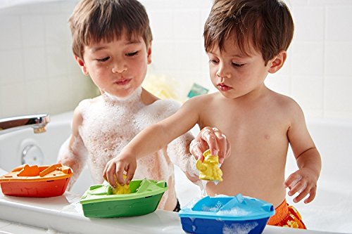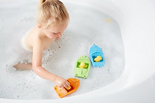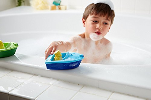 All hands on deck! The Green Toys Sport Boats are making waves! Made in the USA from 100% recycled plastic milk jugs, these lightweight cruisers are specially sized for little hands, making them the perfect go-to toy for the tub, pool, or beach bag. The blue Launch Boat, orange Race Boat, and green Speed Boat all feature brightly colored, interchangeable tops for mix-n-match fun. The easy-open design also makes cleaning a snap! Each boat includes a duck captain figure for extended imaginative role play. No BPA, phthalates, PVC, or external coatings. Dishwasher Safe. Packaged using recycled and recyclable materials and printed with soy inks. Recommended for ages 2 and up.