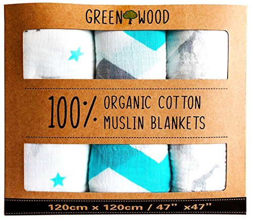 グリーンウッド製品Muslin Swaddle Blankets – 100 % Organic Cotton – Ultrasoftと低刺激性 – 3パックベビーシャワー47 " x 47 " – 完璧なギフト – 3のセット