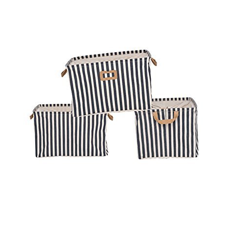 GreenForest? Blue Strips Storage Basket with PU Totes, Set of 3