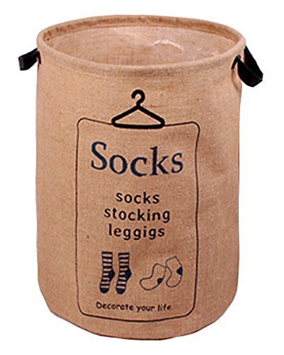 GreenForest Laundry Storage bucket Retro Vintage Jute Linen Burlap Round Storage with Socks Hanger Design