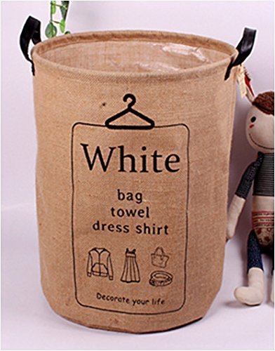 GreenForest Laundry Storage bucket Retro Vintage Jute Linen Burlap Round Storage with Hanger Design by GreenForest-Basket [並行輸入品]
