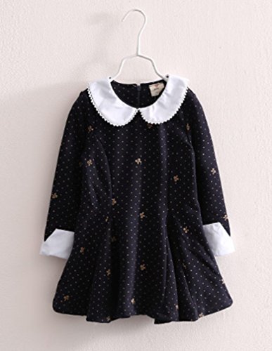 (グリーンソーダ) GreenSoda 女の子 ワンピース フォーマル 卒園 入園 発表会 結婚式 誕生 会 (130, 紺色)
