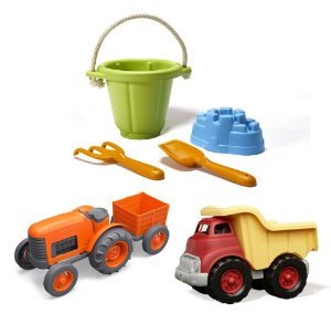 Bundle includes Green Toys Tractor Vehicle, Dump Truck, Sand Play Set