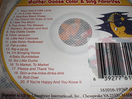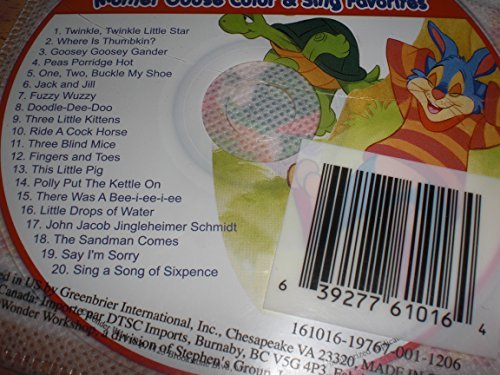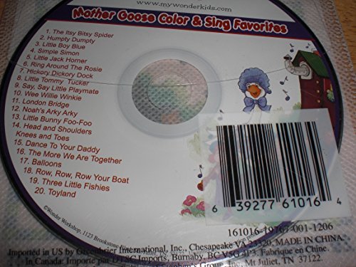 Mother Goose Color & Sing Favorites 20 Songs & Coloring Pages to Print Out Tracks: 1. The Itsy Bitsy Spider, 2. Humpty Dumpty, 3. Little Boy Blue, 4. Simple Simon, 5. Little Jack Horner, 6. Ring Around the Rosie, 7. Hickory Dickory Dock, 8. Little Tommy Tucker, 9. Say, Say Little Playmate, 10. Wee Willie Winkie, 11. London Bridge, 12. Noah's Arky Arky, 13. Little Bunny Foo-Foo, 14. Head and Shoulders, Knees and Toes, 15. Dance To Your Daddy, 16. The More We Are Together, 17. Balloons, 18. Row, Row, Row Your Boat, 19. Three Little Fishies & 20. Toyland.