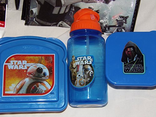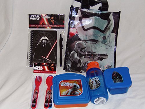*Star Wars Water Bottle, clear blue with orange top *Star Wars Sandwich container *Star Wars small square container with a lid *Star Wars Tote Bag, heavy plastic with handles *Star Wars Reusable flatware set *Star Wars Stationery Set with pen