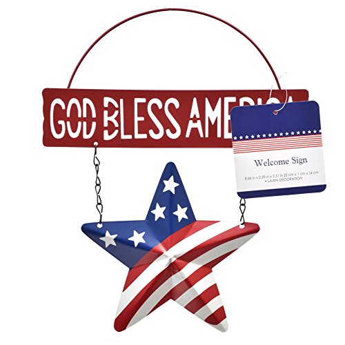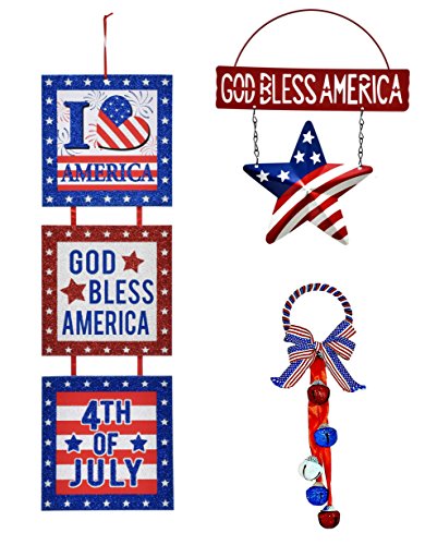 愛国的なアメリカのジングルベルドアノブハンガーをレッド/ホワイト/青のベルが愛国ゴッド・ブレス・アメリカ金属壁記号愛国]で、壁掛け飾りの4th of JULYお祝い。