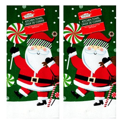 クリスマスディッシュ/ゲストタオルのセット2サンタデザインGreat Gift 。