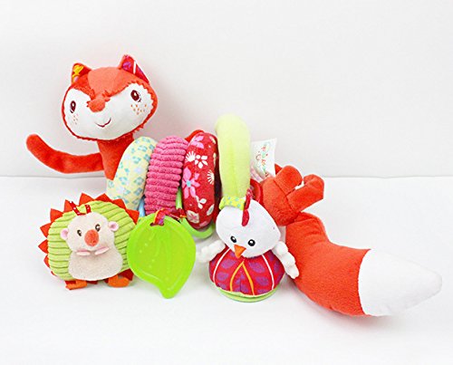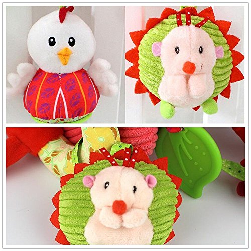 Greencherry 超かわいい ベビーベッドハンギング 多機能動物旋盤ベッドハング ベビー歯ぎしり棒 狐キツネ、ハリネズミ、鳥人形 知育玩具 ベビーキッズベアー装飾おもちゃ カラフル 出産 誕生日 プレゼント 音楽