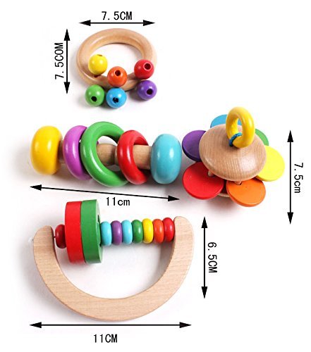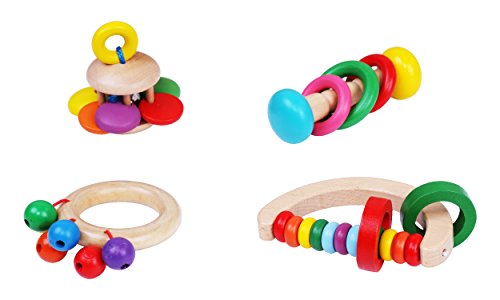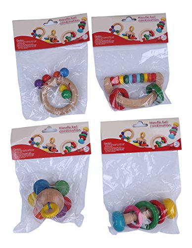Greencherry ( TM ) Set of 4 : Wooden Baby Rattle Musical Teething Grasping ToyアクティビティおもちゃDevelopmentalトイ