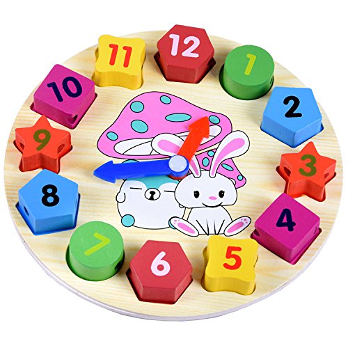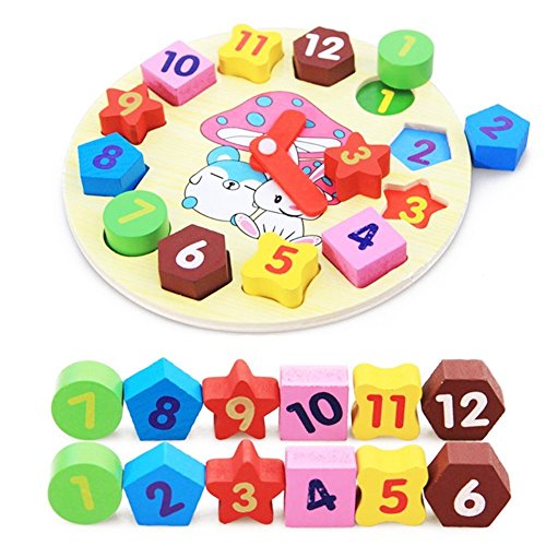 - この時計パズルは2つの回転の時計、12個の数字、と対応数字の12個の物体を組み合わされているので、 お子様は遊ぶ時、時間、形、デジタル、色などを学ぶことができます。