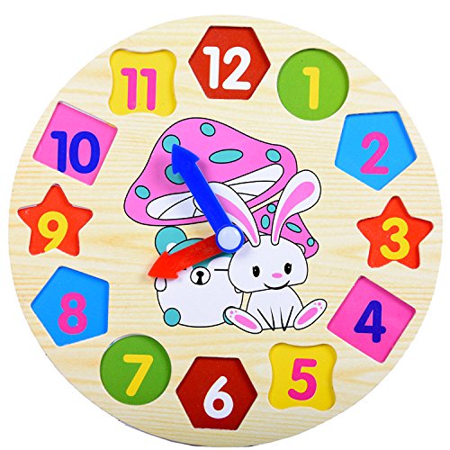 Greencherry木製の漫画のウサギのデジタル時計 型合わせパズル時計 数字パズル 積み木 数字ブロック 時間認知 幼児教育 知育玩具 赤ちゃん子供にギフト プレゼント