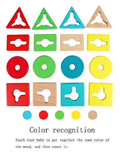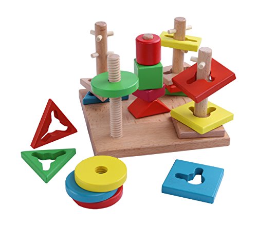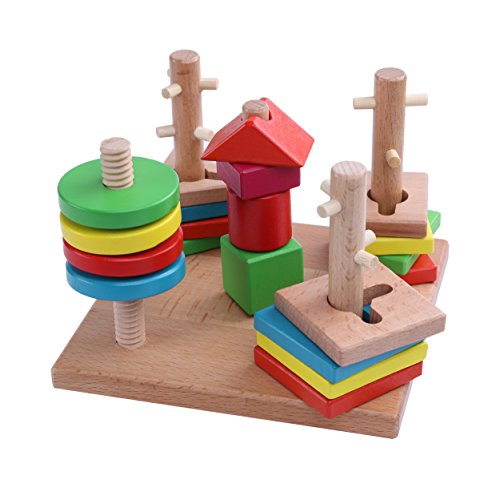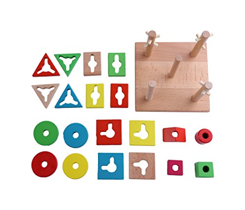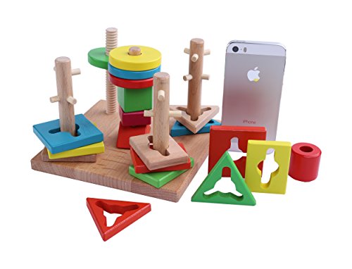 Greencherry 木製カラフルなジオメトリ列形状ソート 型はめパズル 形合わせ 積み木 棒さし 知育玩具 図形、幾何認識 幾何パズル 木製ブロック 子供幼児