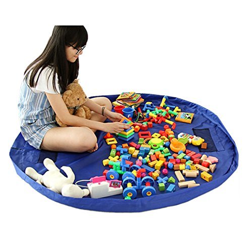 Activity play mat folds instantly into a portable toy storage bag, just pull the drawstrings!