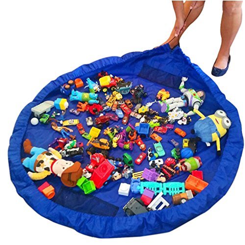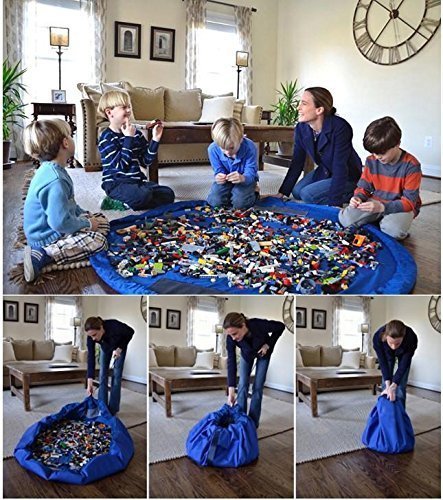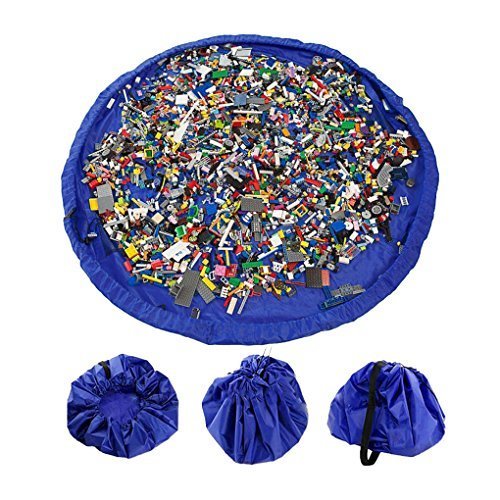 Fakeface Tidy Easy Cleanup Large Size Kids Toy Storage Bag Organizer Foldable Picnic Camping Play Mat, Ideal for Lego, Duplo & Children's toys Faster Cleanup, Quickly Swoops into a Shoulder Bag-Blue [並行輸入品]