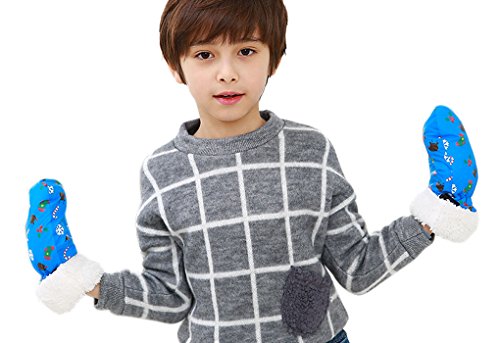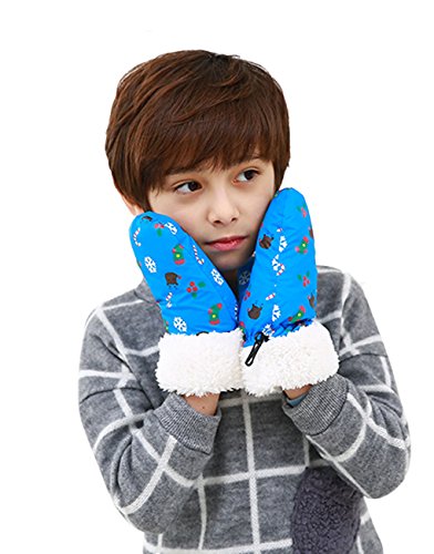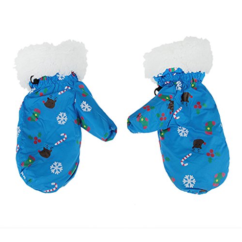 手袋 キッズ 男の子 女の子 スキー手袋 ジュニア 防寒 ミトン 裏起毛 暖かい ボア 保温防風素材 子供用 グローブ 雪遊び スキー スノボ 通学 可愛い クリスマス 誕生日 プレゼント ブルー