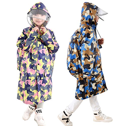 Greenery キッズ レインウェア ランドセル対応 迷彩柄 2重広いつば付き ランドセル背負うまま使える ジュニア 小学生 男の子 女の子 レインコート PVC防水コーティング おしゃれ 通学 バイク 登山 アウトドア プロダクツ 彩色迷彩 L