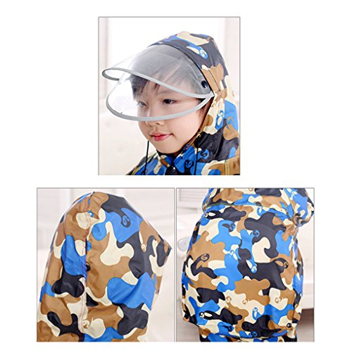 Greenery キッズ レインウェア ランドセル対応 迷彩柄 2重広いつば付き ランドセル背負うまま使える ジュニア 小学生 男の子 女の子 レインコート PVC防水コーティング おしゃれ 通学 バイク 登山 アウトドア プロダクツ 黄色迷彩 XL