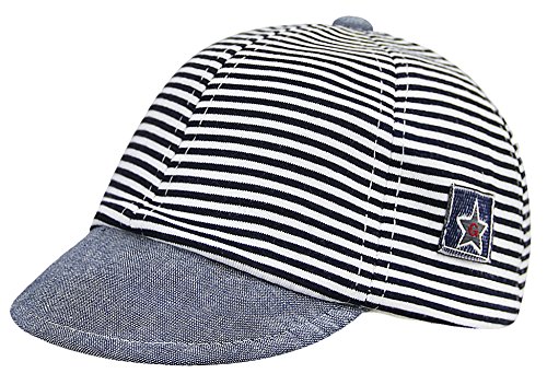 赤ちゃん 帽子 キャップ おしゃれ ストライプ柄 ベビー帽子 男の子 女の子 46cm 3ヶ月~12ヶ月 幼児 帽子 日よけ UVカット ベビーハット コットン素材 オールシーシン ネイビー