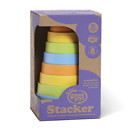 The Green Toys Stacker takes a classic toy and makes it safer and more playful. The eight whimsically colored nesting pieces stack easily from large to small, while also allowing little builders to use their imagination and stack in any order. Little ones can develop hand-eye coordination and color recognition while having plenty of Good Green Fun. Most importantly, the Green Toys Stacker is safe. Its unique design has no center post. No BPA, PVC, phthalates, or external coatings. This Stacker is made in the USA from 100 Pct. recycled plastic milk containers which save energy and reduce greenhouse gas emissions. Packaged using only recycled and recyclable materials and printed with soy inks. For ages 6 months and up.