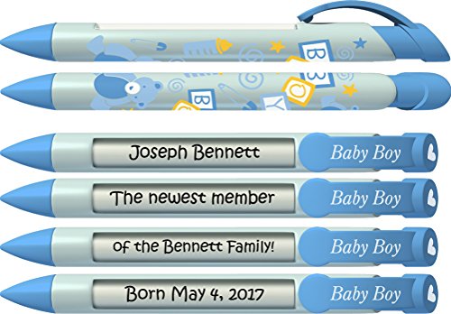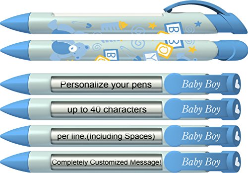 Babyペンby Greeting pen- PersonalizedベビーシャワーFavor /招待とBirth Annoucementペン – Baby Boyブロック回転メッセージペン50パック( p-bp-21 – 50 )